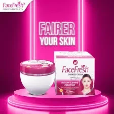 Reveal your natural beauty with Facefresh Cream Jar Pink. This 70G jar is enriched with skin-loving ingredients that nourish, hydrate, and brighten your complexion. Designed for daily use, it helps reduce dark spots, uneven skin tone, and dryness, leaving your skin soft, smooth, and glowing. The lightweight, non-greasy formula absorbs quickly, making it perfect for all skin types. Pamper your skin with the radiance-boosting care of Facefresh Cream.