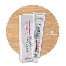 Framesi Framcolor Glamour Hair Color Cream in the stunning shade of 10 Platinum Blonde. This luxurious hair color cream is designed to transform your locks into a dazzling display of platinum perfection. The unique formula not only imparts vibrant color but also nourishes and strengthens your strands, leaving them silky smooth and radiant.