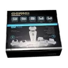The Geemy Ladies Shaver Machine 5-in-1 GM7005 is a versatile grooming device designed for women. It features multiple attachments for shaving, trimming, epilating, and exfoliating, providing a complete hair removal and skincare solution. The waterproof design allows for both wet and dry use, and it comes with a rechargeable battery for cordless convenience. Ideal for smooth, precise, and painless hair removal on legs, underarms, bikini lines, and more.