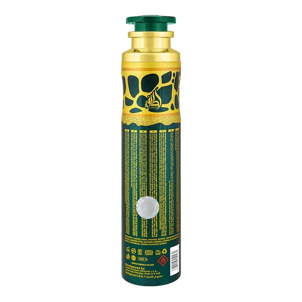 Lattafa Air Freshener Qimmah 300ML – Refresh your space with the elegant and captivating scent of Qimmah. This luxurious air freshener combines woody, musky, and floral notes, creating a sophisticated and inviting atmosphere. Perfect for homes, offices, cars, and fabrics, it eliminates odors while leaving a long-lasting, refreshing fragrance.