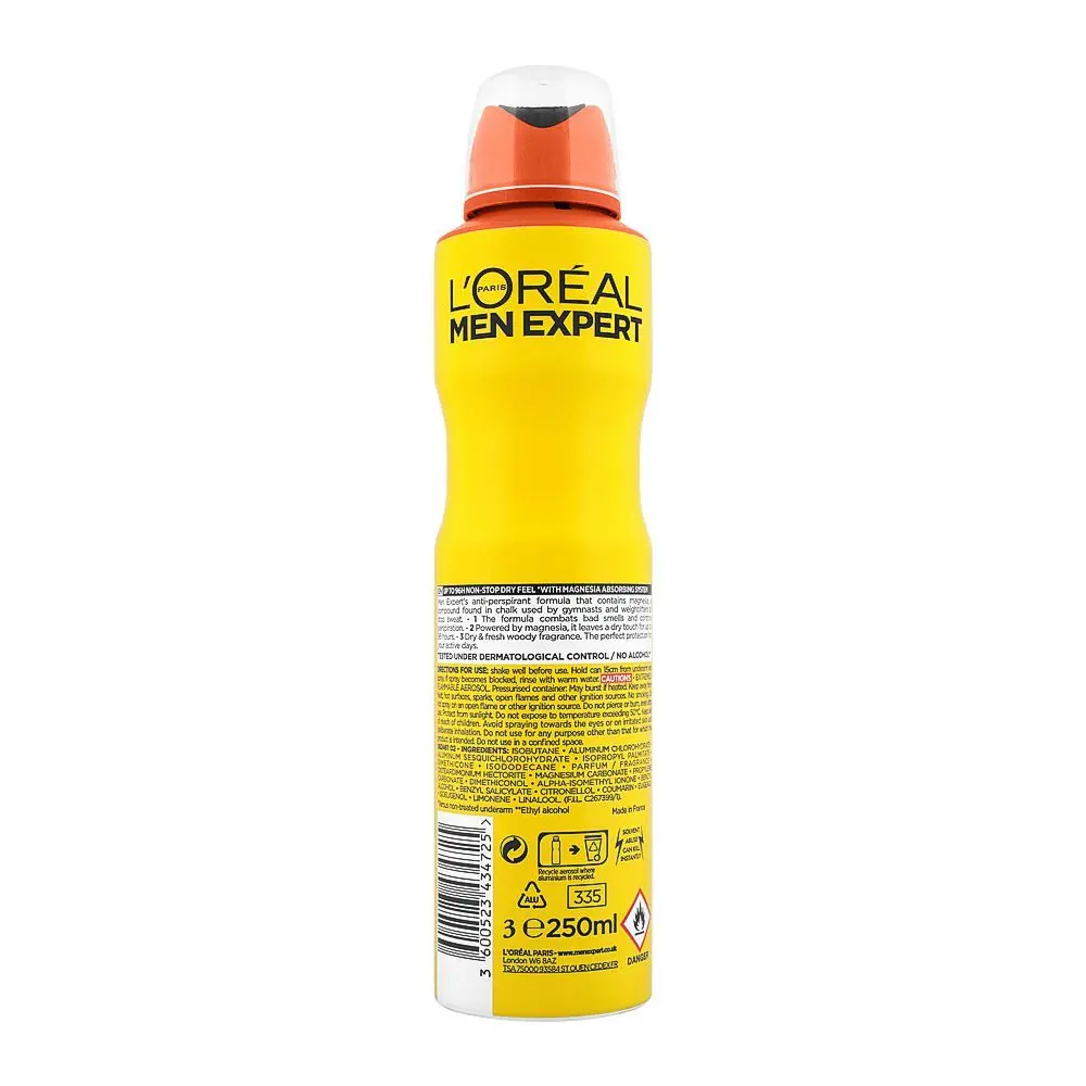L'Oreal Men Expert Invincible Sport Body Spray (250ml) is a refreshing and long-lasting deodorant spray designed for active men. It offers 48-hour protection against sweat and odor, with a sporty, masculine fragrance. The lightweight formula is alcohol-free, ensuring it doesn’t dry the skin, and is enriched with Vitamin E for added care. Ideal for daily use, especially for men with an on-the-go lifestyle.