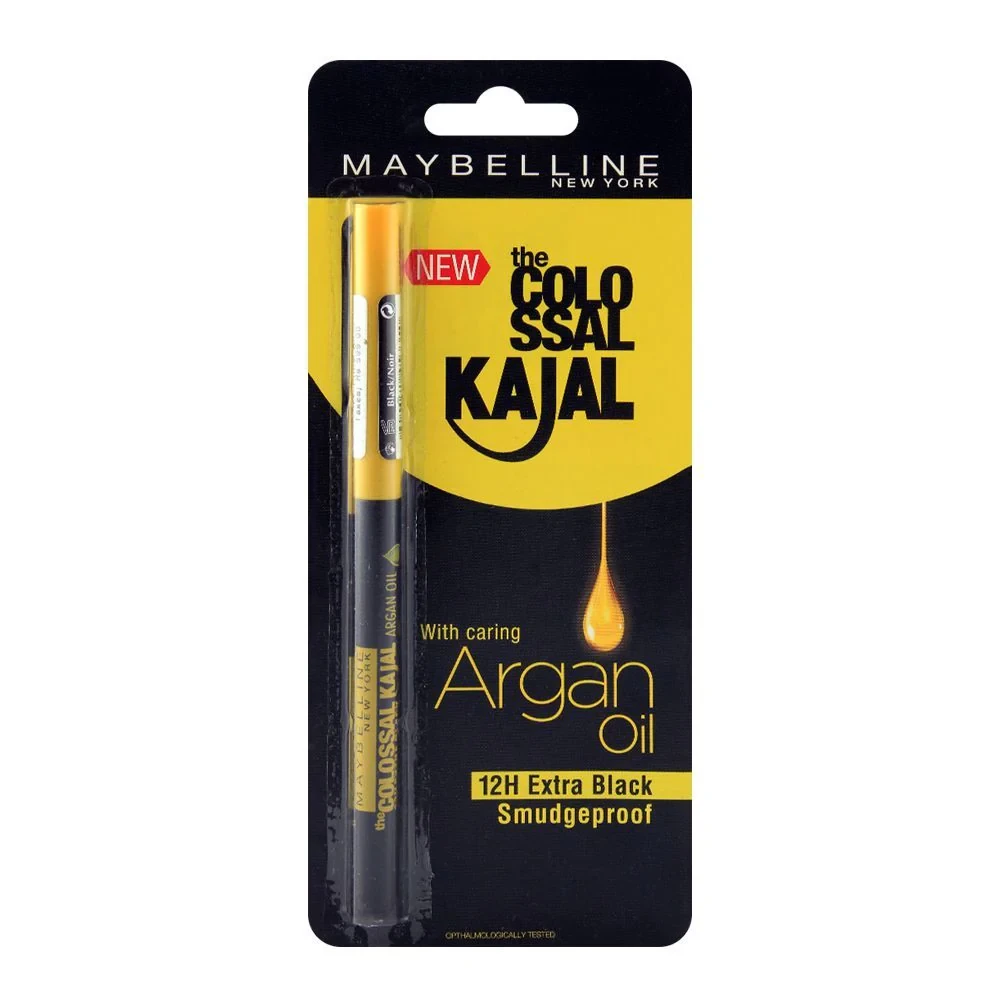 The Maybelline Colossal Kajal with Argan Oil - Extra Black is a creamy, intense black kajal pencil enriched with argan oil for smooth application and nourishment. It offers long-lasting, smudge-proof wear with a bold, highly pigmented finish. Ideal for defining and enhancing the eyes, it’s also easy to blend for a smoky effect. The twist-up design eliminates the need for sharpening.