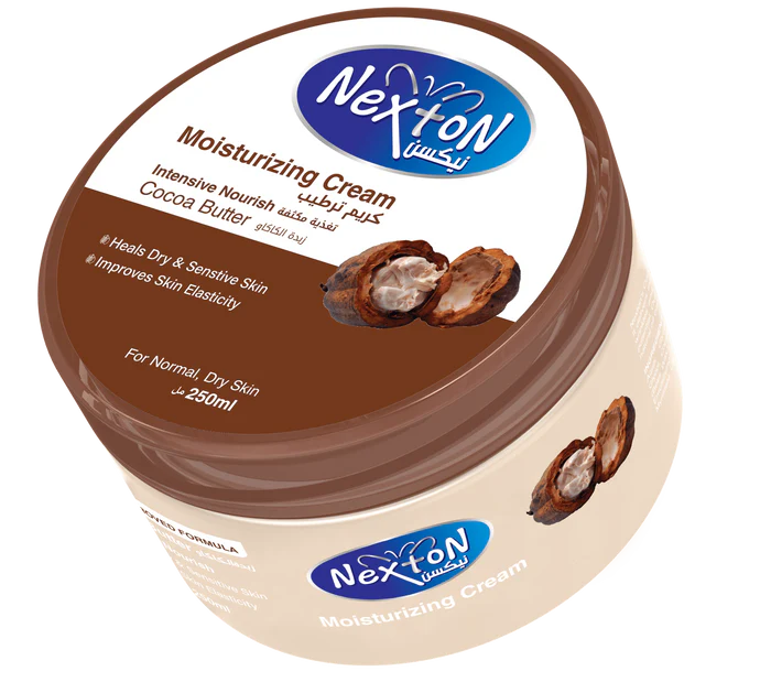 Nexton Moisturising Cream with Cocoa Butter (250ml) is a rich, nourishing cream designed to deeply hydrate and soften dry skin. Enriched with cocoa butter, it helps improve skin elasticity, soothes rough patches, and provides long-lasting moisture. Suitable for all skin types, it absorbs easily without a greasy feel, leaving skin smooth and supple. Ideal for daily use on the face and body.