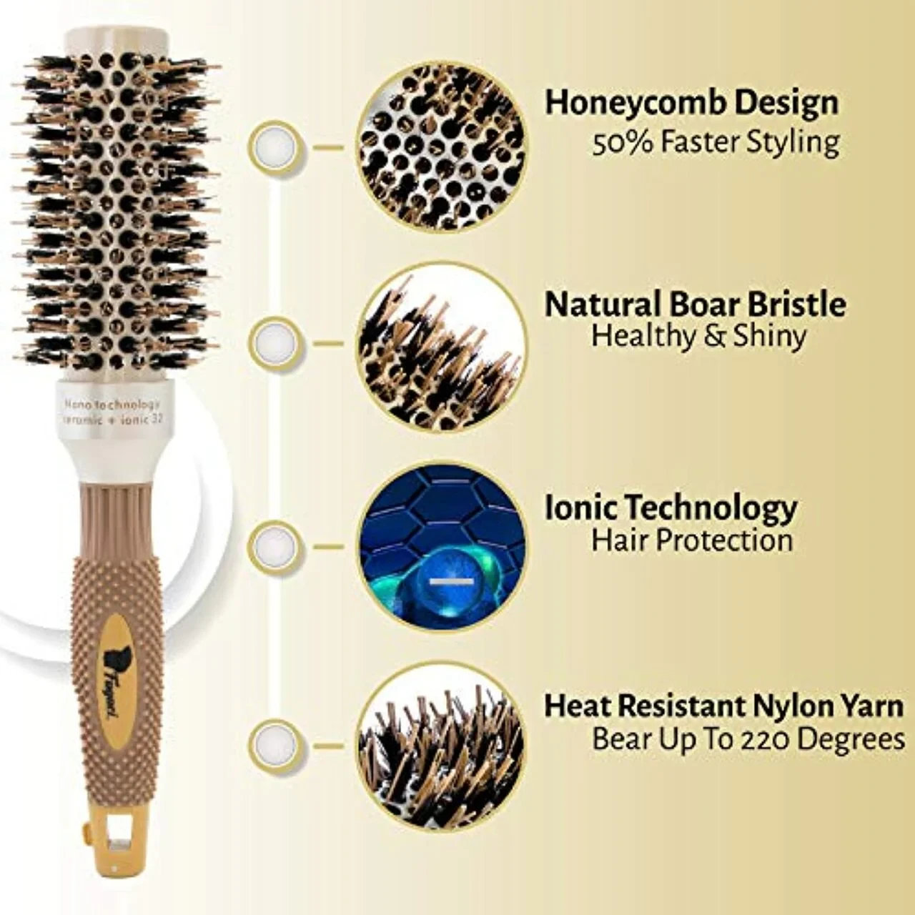Round Shape: The round design of the brush makes it ideal for styling, especially for creating curls, waves, and volume. The shape allows you to wrap hair around the brush, making it perfect for blow-drying and creating smooth, bouncy hairstyles.