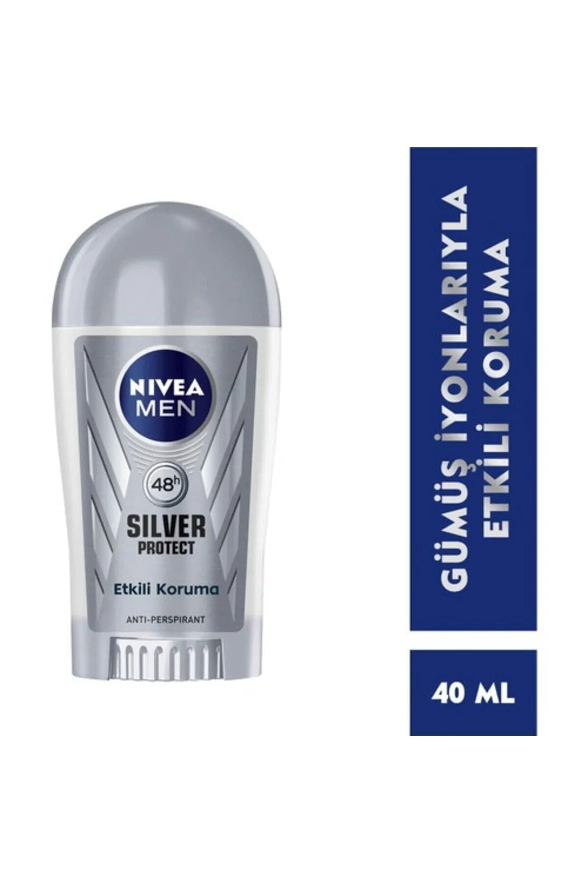 The Nivea Deodorant Stick Men Silver Protect (40ml) is an anti-perspirant deodorant designed for men, offering 48-hour protection against sweat and odor. It contains silver ions for antibacterial action, keeping underarms fresh and dry. The formula is alcohol-free and gentle on the skin, with a clean, masculine scent. The compact stick format ensures easy, no-mess application. Ideal for daily use.