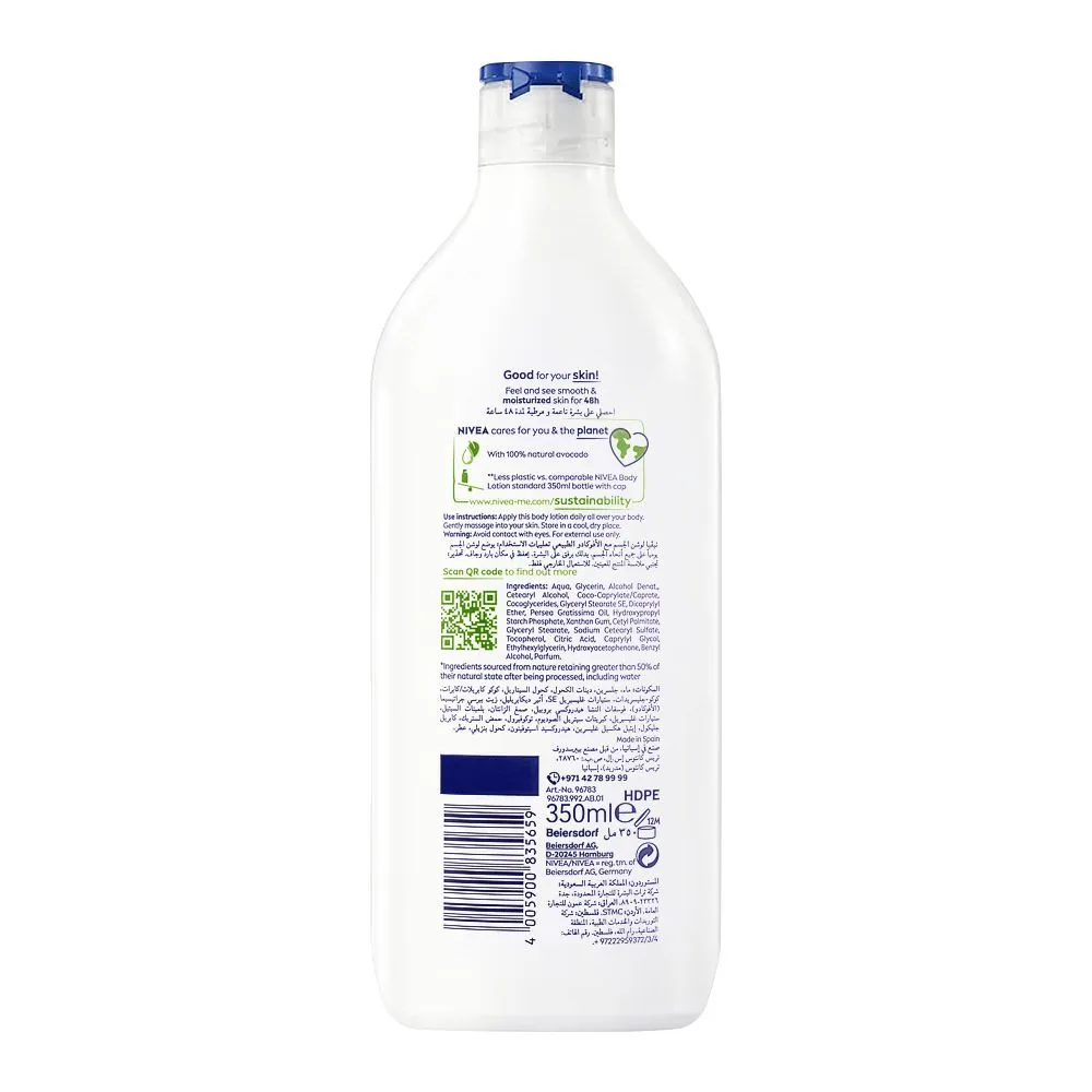 The Nivea Naturally Good Avocado Oil & Hydration Body Lotion (350ml) is a nourishing moisturizer enriched with avocado oil and organic aloe vera. It provides 48-hour hydration, absorbs quickly, and is suitable for sensitive skin. The formula is free from parabens, silicones, and artificial colors, making it a gentle, natural choice for daily skincare.