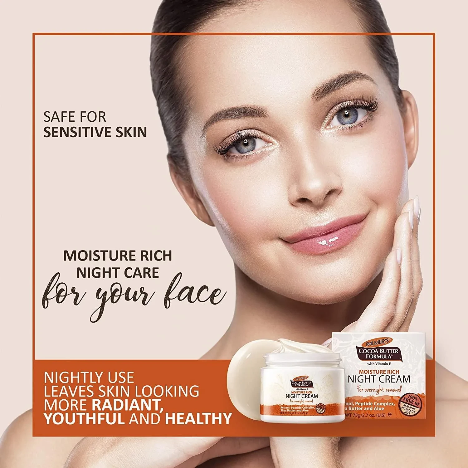Palmer's Cream Moisture Rich Night (75g) is a deeply nourishing night cream designed to hydrate and repair dry skin while you sleep. Enriched with cocoa butter, shea butter, and vitamin E, it helps restore moisture, improve elasticity, and leave skin soft and smooth by morning. Suitable for all skin types, especially dry or sensitive skin. Free from parabens and mineral oil.