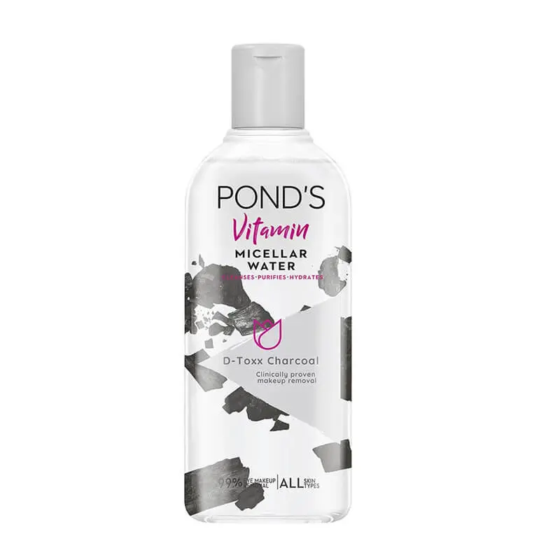 Pond's Micellar Charcoal (100ml) is a purifying facial cleanser designed to deeply cleanse and detoxify the skin. Infused with **activated charcoal**, it effectively draws out impurities, excess oil, and pollutants. The micellar technology ensures gentle yet thorough makeup removal without harsh rubbing. Suitable for all skin types, it leaves the skin feeling fresh, clean, and mattified. Ideal for daily use to achieve a earer, brighter complexion**.