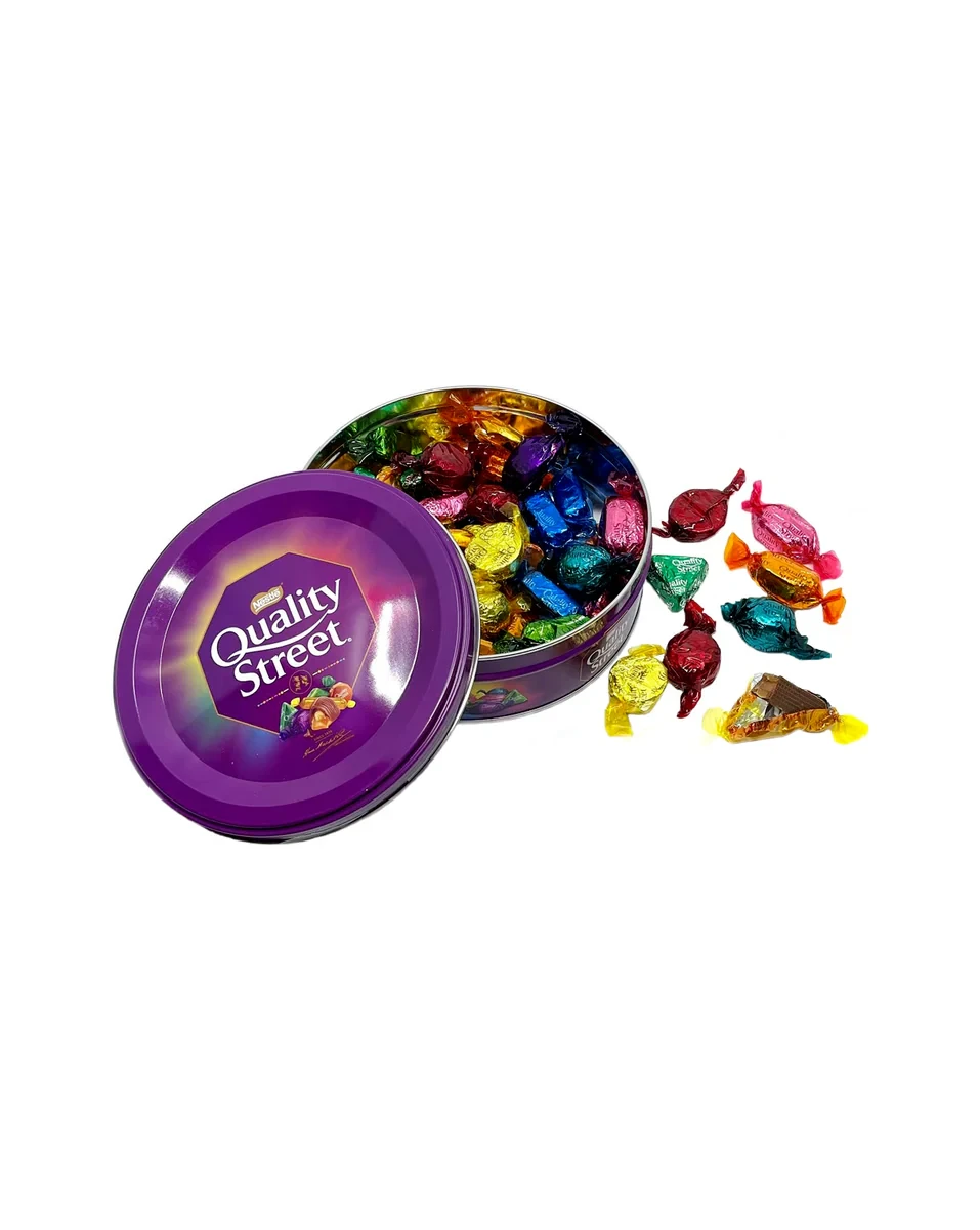 The Quality Street Chocolate Tin 480g is a classic assortment of colorful, individually wrapped chocolates and toffees. It includes a mix of popular varieties like the Purple One (hazelnut in caramel) , Strawberry Delight , Toffee Penny , and Orange Crunch , among others. Packaged in a festive, iconic tin, it’s perfect for sharing during holidays, celebrations, or as a sweet treat. A beloved British favorite since 1936!