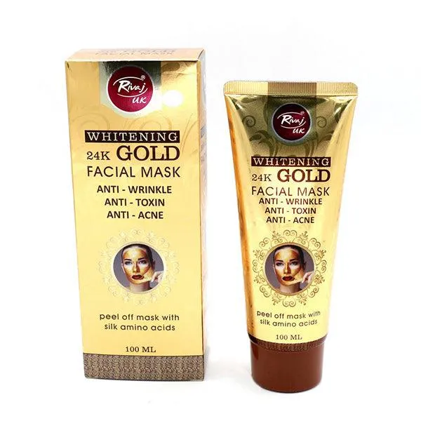 The Rivaj Peel Off Mask Gold 100ML is a luxurious skincare product designed to cleanse, exfoliate, and brighten the skin. Infused with 24K gold particles, it helps remove impurities, tighten pores, and improve skin elasticity. The mask promises a radiant, glowing complexion while reducing dullness and fine lines. Its peel-off formula gently lifts away dead skin cells, blackheads, and excess oil, leaving the skin smooth and refreshed. Suitable for most skin types, it offers an anti-aging and revitalizing effect with regular use.