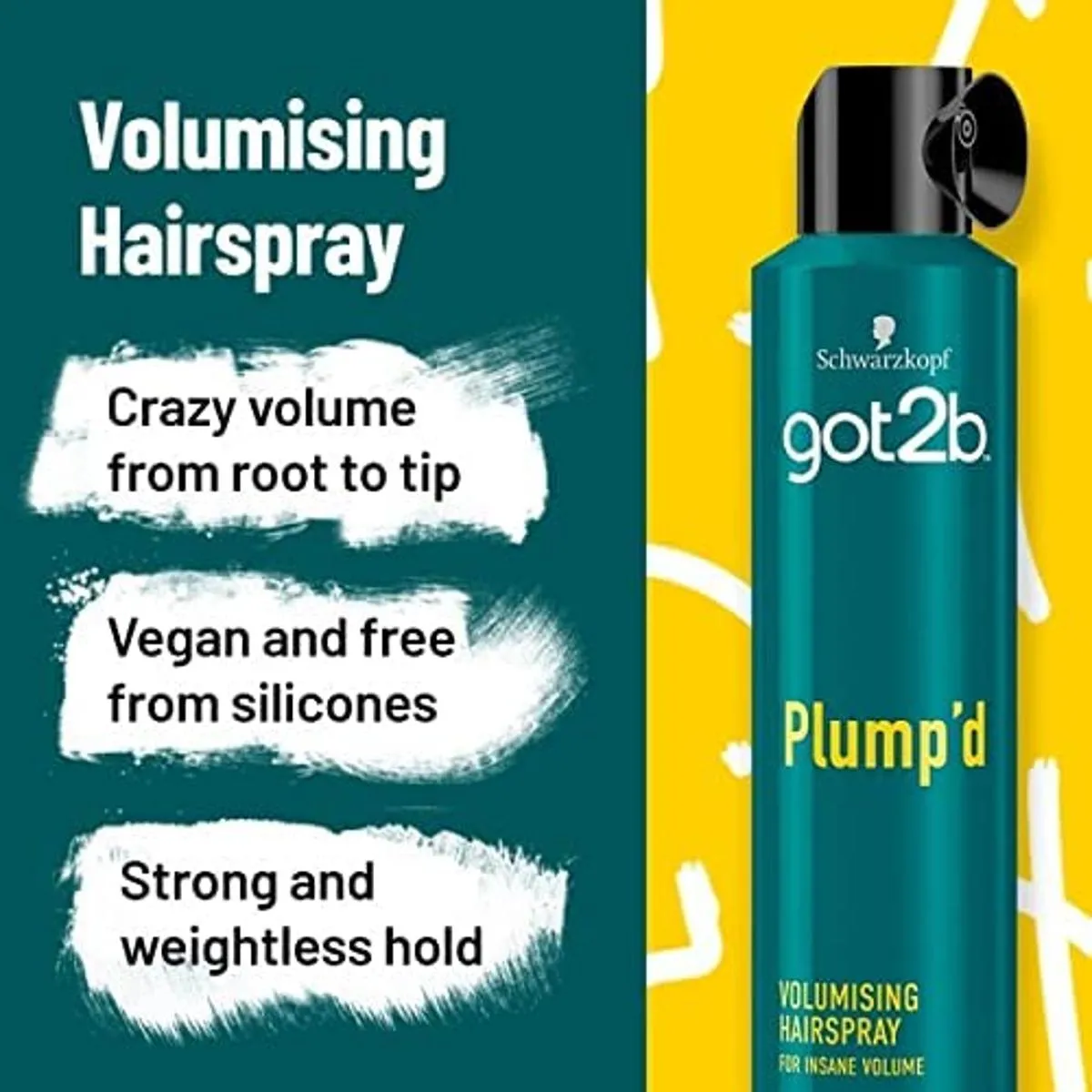 The Schwarzkopf Got2B Plump'd Volumizing Hair Spray 300ml is a lightweight, texturizing spray designed to add instant volume and lift to fine or flat hair. It provides long-lasting hold without stiffness, enhancing natural texture for a fuller, bouncier look. Ideal for creating effortless, voluminous styles with a flexible finish.