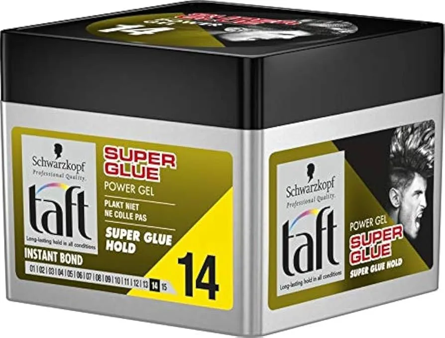 The Schwarzkopf Taft Hair Gel 14 Super Glue Hold (250ml) is an ultra-strong styling gel designed for maximum hold and control. It provides a long-lasting, firm fixation with a high-shine finish, ideal for structured hairstyles and spikes. The formula is easy to apply, washes out with water, and keeps hair in place all day. Suitable for all hair types.