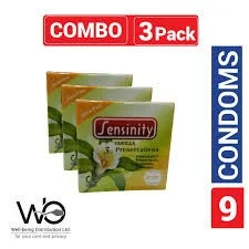 Sensinity Condoms Vanilla 3s is a variant of condoms offered by Sensinity, likely designed for pleasure and comfort. The "Vanilla" suggests a classic, smooth texture, while "3s" indicates a pack of three condoms. These condoms are probably latex-based, lubricated, and aimed at providing reliable protection along with a natural feel during intimacy.