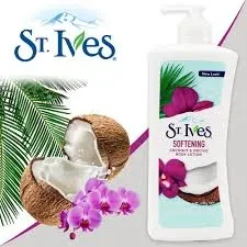 The St Ives Coconut & Orchid Lotion (621ml) is a hydrating body lotion that combines the nourishing benefits of coconut oil and the delicate fragrance of orchid. It is designed to moisturize and soften the skin while leaving a light, tropical scent. The formula is paraben-free and enriched with natural extracts, making it suitable for daily use. The large 621ml bottle is ideal for long-term use and provides deep hydration for smooth, healthy-looking skin.
